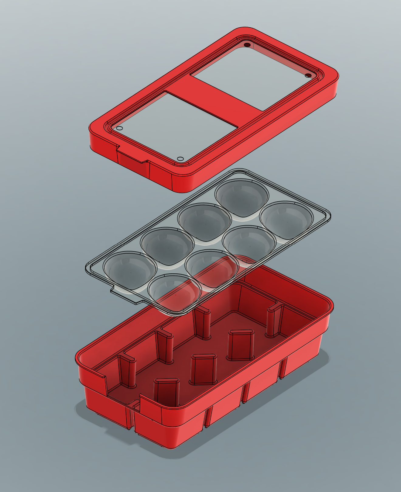 After a detailed research phase to determine the best biodegradable and manufacturable materials, I developed a two-part moldeddesign with a removable rigid PET frame heat-fixed to a flexible membrane to protect the berries, with a removable clear PET window to allow store shelf visibility. This design was functionally modular, and could be scaled from a single berry SKU to up to 11 in a single package.